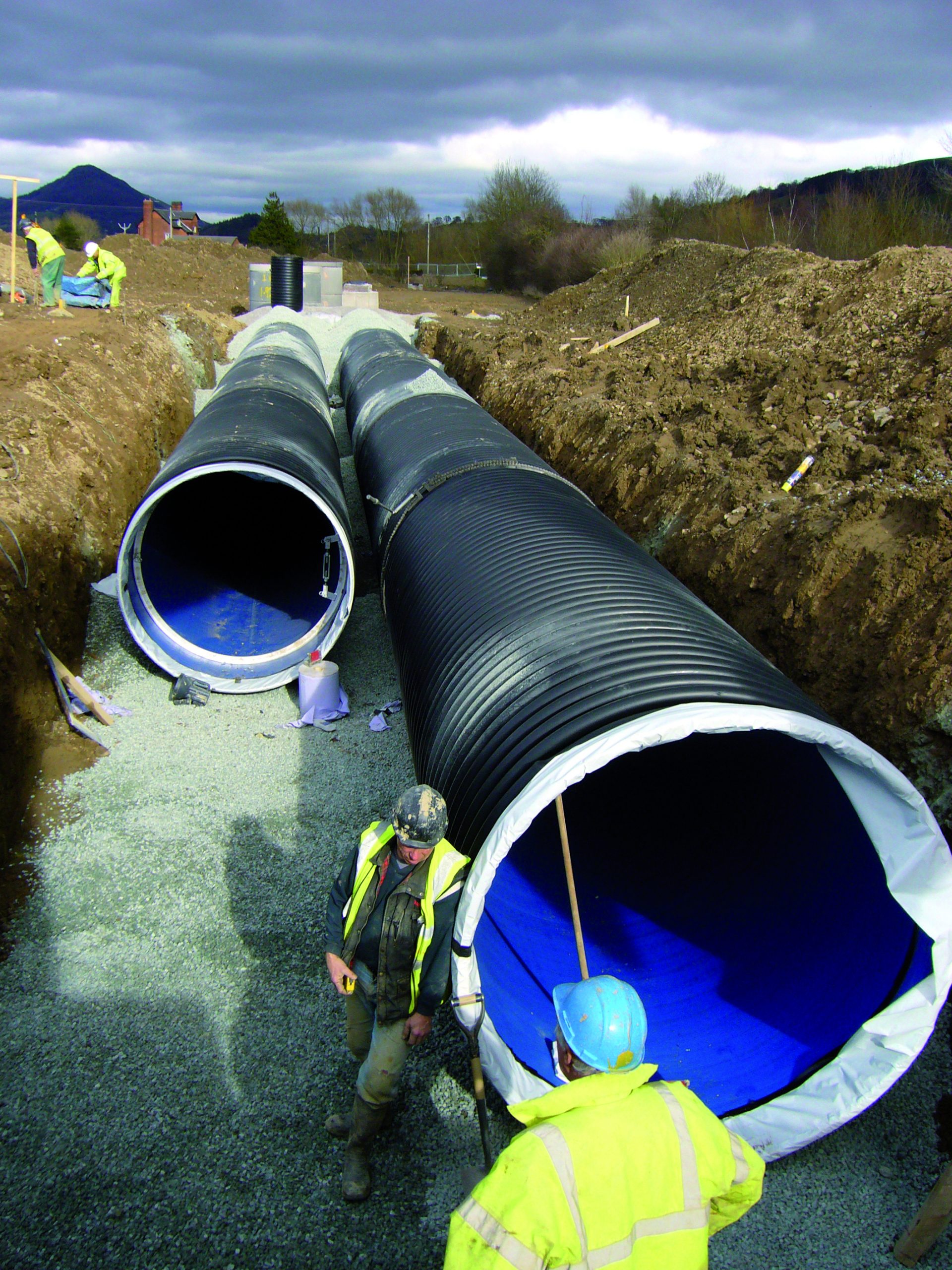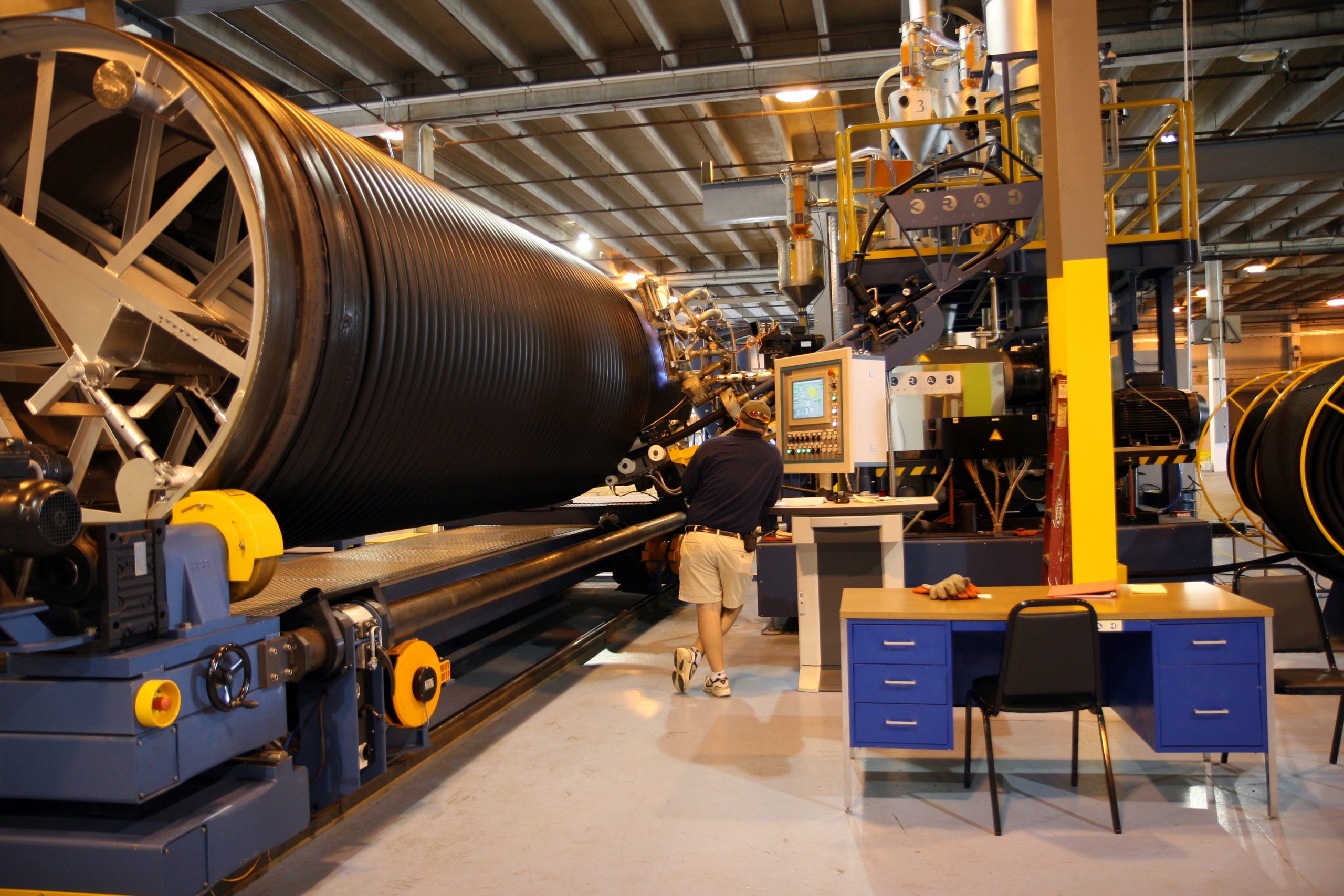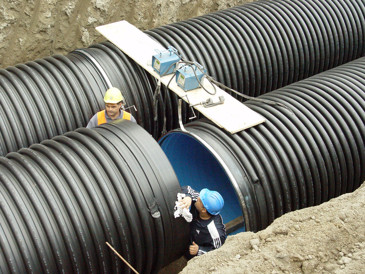 When installing sewer systems, holes must often be milled in the pipes in order to be able to insert inlets and outlets. For larger holes, we offer the Manhole Fabrication Center (MF 200), which can mill holes from 90 to 2500mm. The Krah Group has now additionally developed a mobile hole milling machine that can mill hole diameters from 150 to 500mm continuously. This hole cutter can be used for solid wall pipes as well as for profiled pipes. For solid wall pipes, a minimum wall thickness of 10mm is required. The hole miller can be used on pipes with a diameter of DN/ID600mm to DN/ID3000mm.